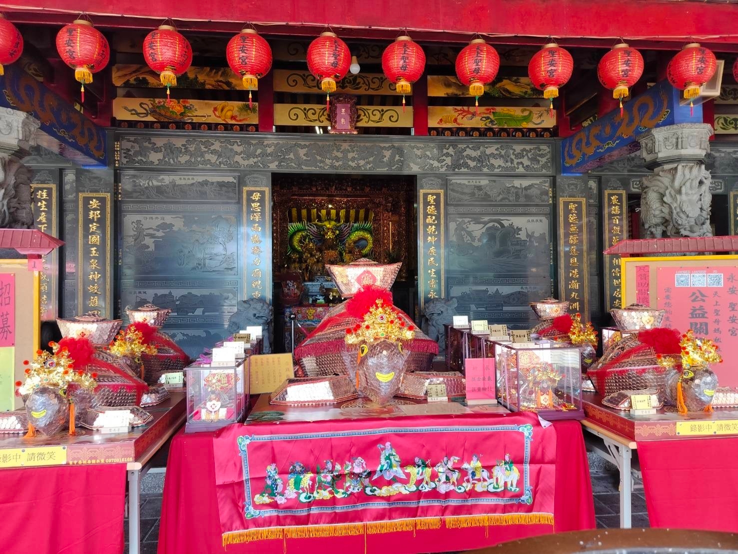 113年6月10日(農曆五月五日)端午節當日信眾表示天上聖母神威顯赫,讓他離鄉創業有成,今日回鄉來還願,其事業順利、財源廣進,因金錢龜是可保佑闔家平安的吉祥物,有摸龜首「子孫會出頭」、摸龜身「家和萬事興」、摸龜尾「大家存傢伙」、摸龜嘴「平安大富貴」、摸龜腳「米甕呷袂乾」的靈驗傳說,因此還願金錢龜一座(長一百五十公分,寬一百廿十公分)感謝永安聖安宮天上聖母永安媽的賜福讓事業步步高升。 剛好時至端午節,宮廟將金錢龜置於前庭,供信眾摸金錢龜得好運媽祖賜福,同時為延續這份還願金錢龜的心意及好運勢,聖安宮內也準備可以讓信眾認購過香爐後可帶回家賜福的金錢龜,讓信眾延續這份好運,放在家裡賜福加祿,同時也可以將金錢龜放置於聖安宮讓媽祖祈福平安。